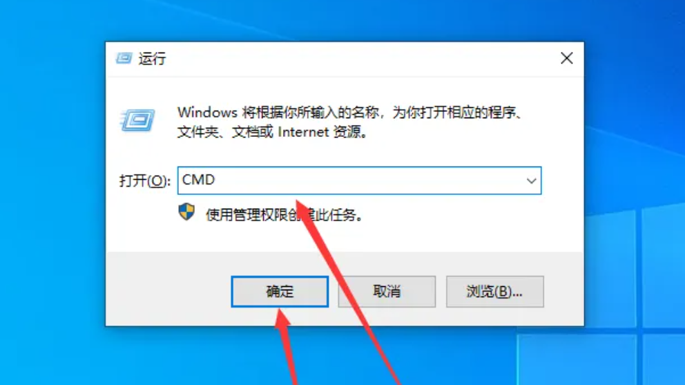 第二步:输入“CMD”,然后点击“确定”按钮。